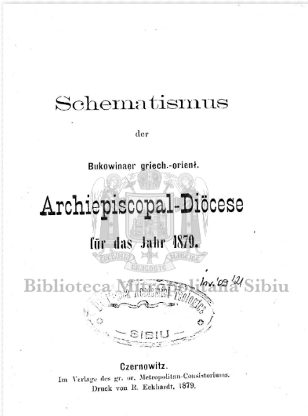 Schematismus der Bucowinaer griech.-orienth. Archiepiscopal-Diöcese